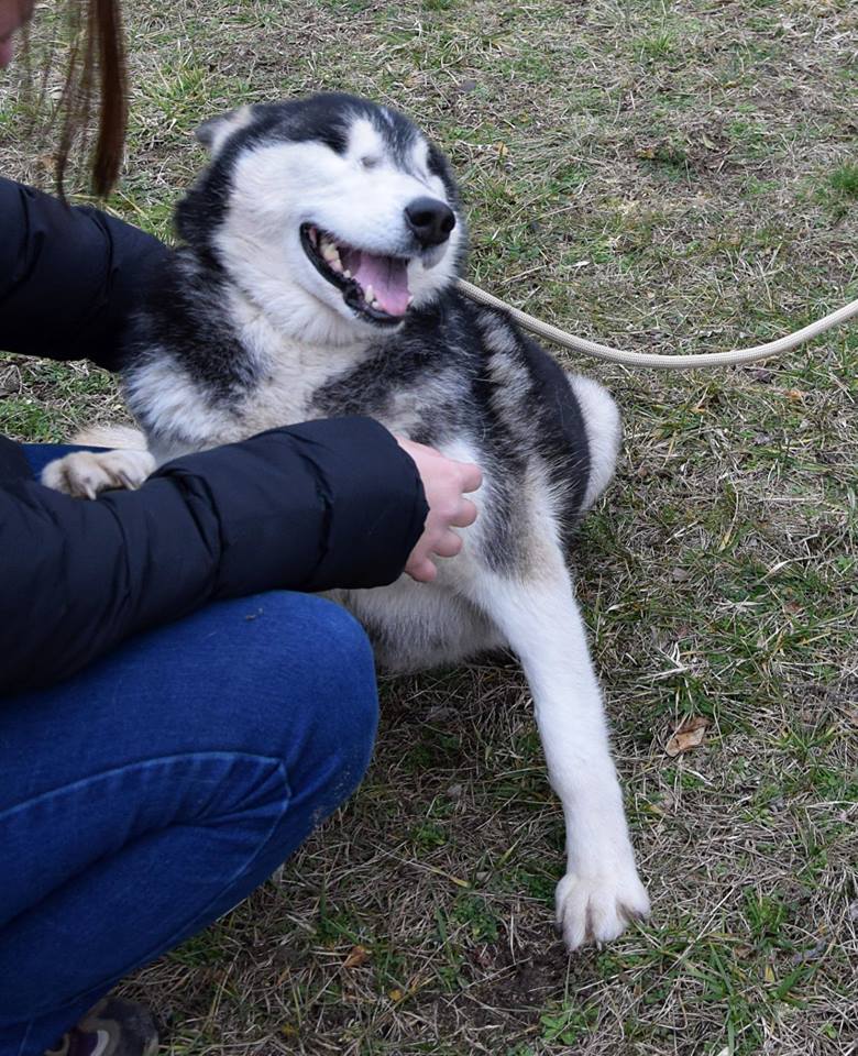 Liza 4 éves körüli husky szuka. Eredeti tulajdonosa rendszeresen bántalmazta, csont sovány volt, egy méteres láncon tengette életét. Mire Alapítványunkhoz került, szemei olyan mértékben sérültek, hogy el kellett távolítani. Liza a műtét után gyorsan felépült,tökéletesen hozzászokott az őt körülvevő világhoz. Világtalansága nem zavarja, az elmúlt történések lelkét megtörni nem tudták. Igazi husky, makacs, énekel és szökik. Szukákkal domináns, de állapota miatt is inkább egyedüli kutyának ajánlott.